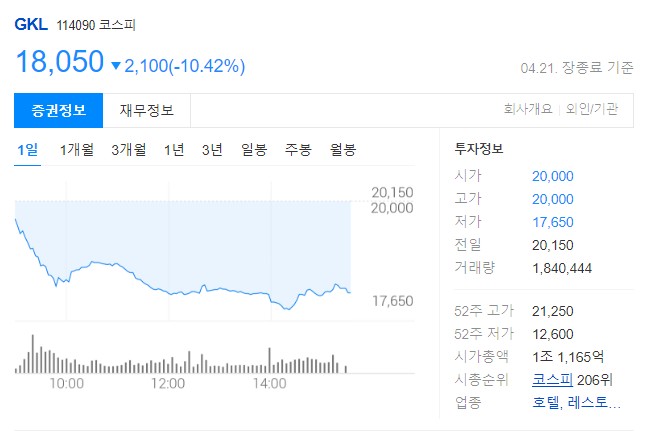 세븐럭 카지노 등을 운영하는 GKL 역시 파라다이스와 함께 한중 경색 우려에 대한 하락장을 고스란히 떠안아야 했습니다. 낙폭 또한 10%대로 상당히 크게 받았습니다. 그 동안 일본에 집중하는 모습을 보여었지만 증권가에서는 중국 리오프닝 관련주 수혜로 목표가를 크게 높인 상태에 신규 투자가 많았던 종목이었는데 투자자에게는 뼈아픈 상황이기도 합니다.