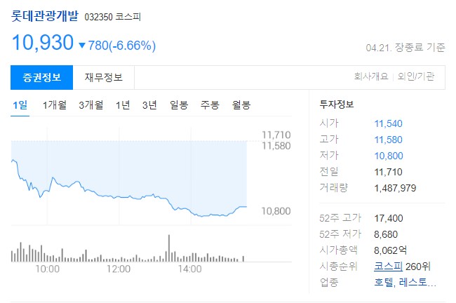 주로 여행사업을 영위했지만 제주도 카지노 오픈과 함께 완벽하게 카지노 관련주로 넘어가 영향을 받는 롯데관광개발 역시 주가 하락의 영향을 피하지 못했습니다. 다만, 파라다이스 보다는 낙폭이 적어서 다행이라는 의견이 있는데요. 하지만 현재 롯데관광개발의 재무리스크가 좋지 못한 상황으로 알려져 있는 만큼 예의주시해야 할 종목이기도 합니다.